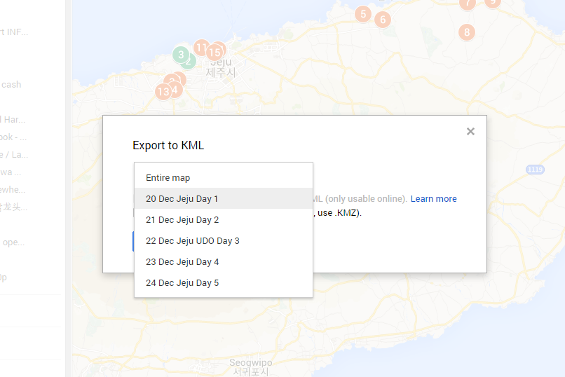 I set up my daily itineraries using Google Maps which was really fun and easy to do. The guide to do that can be seen here. The problem started when I had to add some places to the Jeju Island map in Google. There were some restaurants that weren't listed in Google Maps at all. At one point, the search for one address was resulted in two different locations. Lastly, Google Maps couldn't create any driving or walking route at Jeju Island.